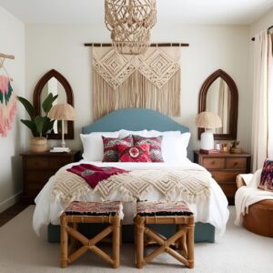 A boho and natural-style bedroom is all about laid-back elegance, organic textures, and personal expression. It’s cozy yet eclectic—a harmonious blend of nature-inspired elements and free-spirited design.
